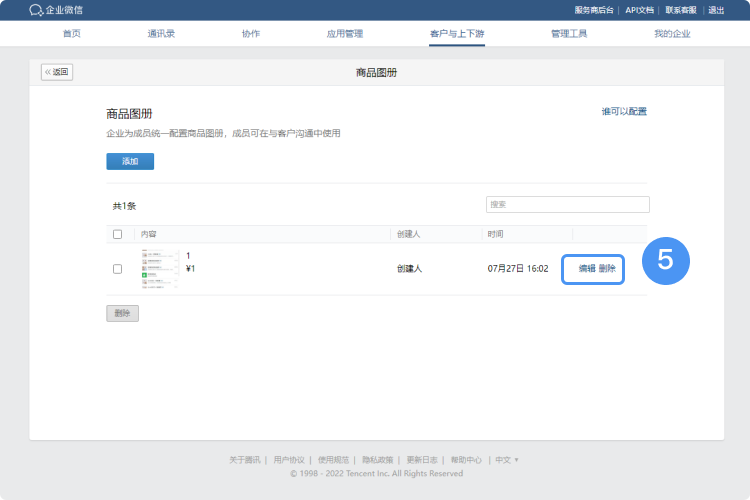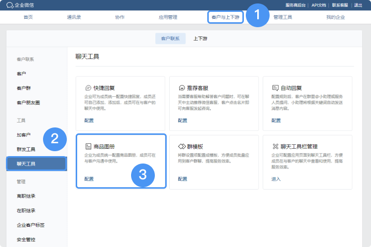 热门搜索:企业微信、企业微信会话存档、企业微信高级功能、企业微信上海服务商一、管理员如何编辑/删除共享使用的商品图册超级管理员可在【管理后台->客户与上下游->客户联系->聊天工具->商品图册配置->成员的商品图册->管理】找到对应商品图册进行编辑修改或删除图册。 二、成员如何编辑/删除仅自己使用的商品图册成员可在【工作台->客户联系/客户群->商品图册】,点击某个图册之后继续点右上角进行编辑/删除,也可以在“我的商品图册”页面点右上角三个点选择“编辑图册”进行批量删除。 热门搜索:企业微信、企业微信会话存档、企业微信高级功能、企业微信上海服务商![]() |